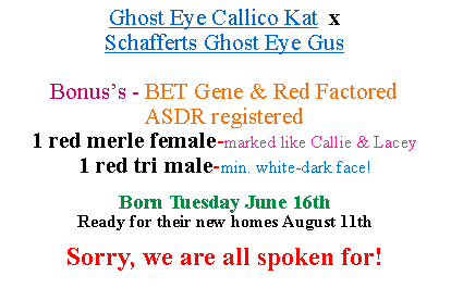 Ghost Eye Mini Aussie-Sask., CanadaText Box: 2 weeks old
